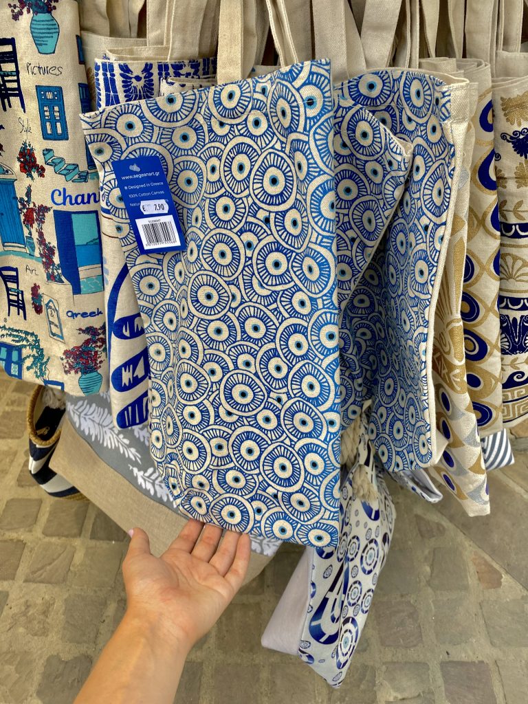 Perdez-vous dans les nombreuses petites boutiques de souvenirs, c’est l’occasion de faire le plein de petits bijoux et bibelots au célèbre motif de l’oeil bleu de Grèce !