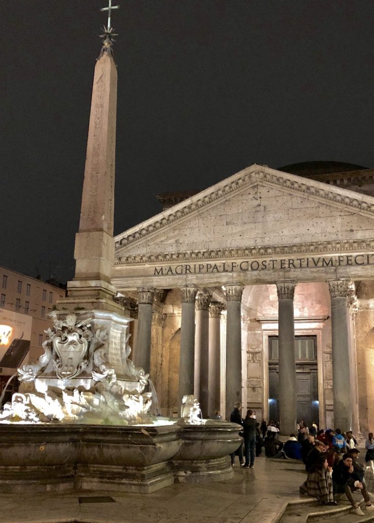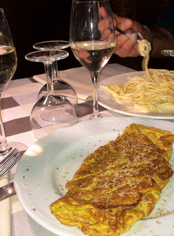 Pour le dîner, nous vous proposons de retourner près du Panthéon et de vous installer à l’Hostaria Panthéon. C’est un restaurant très sympa et bon bien que très touristique ! On y a mangé des tagliatelles crème champignon et une omelette à la truffe et nous étions ravis 🥰 Son point fort ? Manger tout en admirant le Panthéon illuminé la nuit.