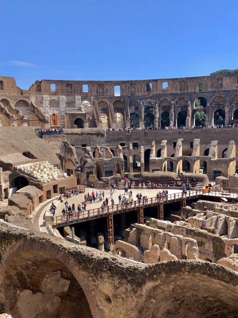 Vous pourrez vous promener dans l’arène où se déroulaient les combats de gladiateurs et imaginer l’effervescence qui régnait autrefois dans cet endroit. Vous pourrez aussi regarder par les fenêtres du Colisée 🥰 Vous pourrez admirer l’Arc de Constantini, le Mont Palatin ainsi que la ville de Rome !