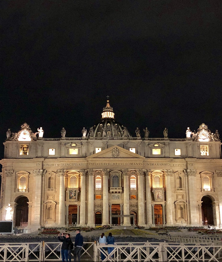 Votre prochaine étape sera la visite de la Basilique Saint-Pierre. De jour, admirez l’architecture grandiose de cette majestueuse église et explorez ses magnifiques trésors artistiques. De nuit, revenez pour une expérience différente, lorsque les lumières mettent en valeur la beauté de ce lieu sacré.