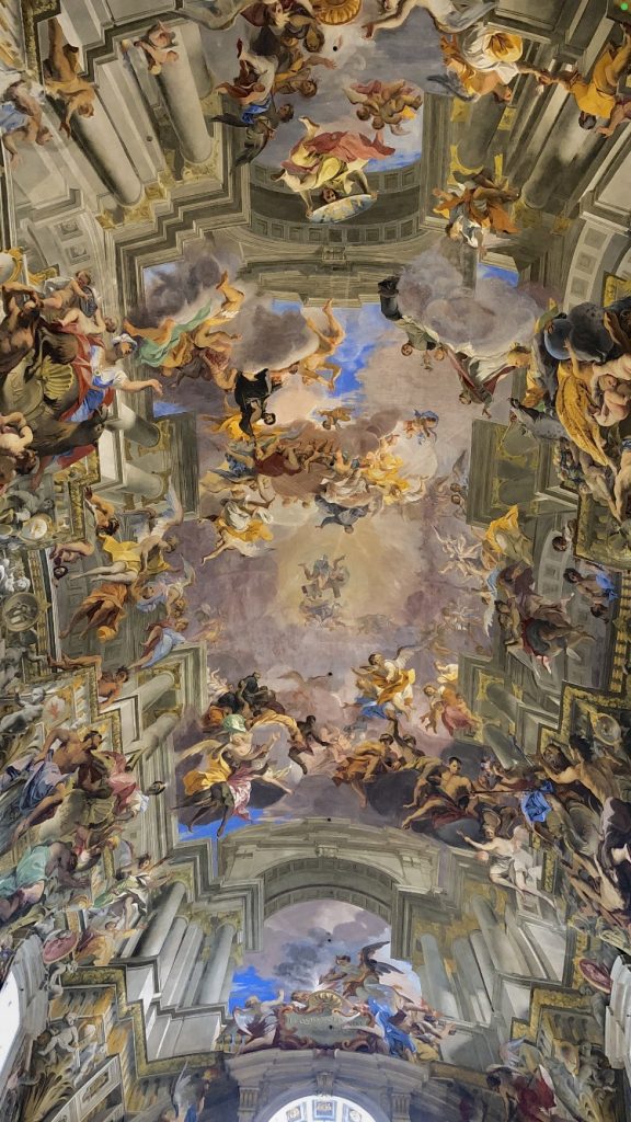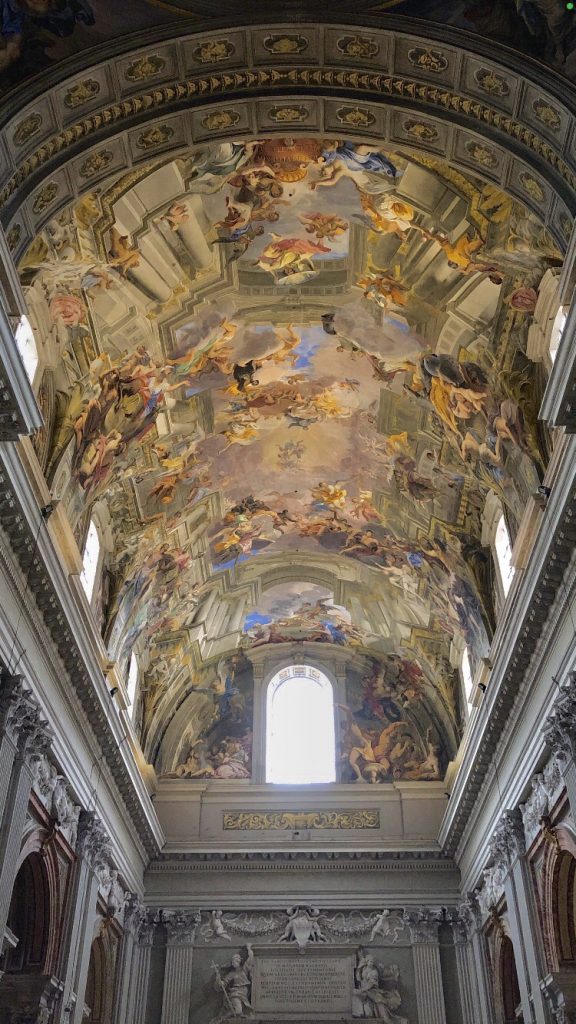 Direction ensuite l’église San Ignazio de Loyola. Cette église baroque abrite une fresque illusionniste absolument splendide sur le plafond 😍. Émerveillement garanti !